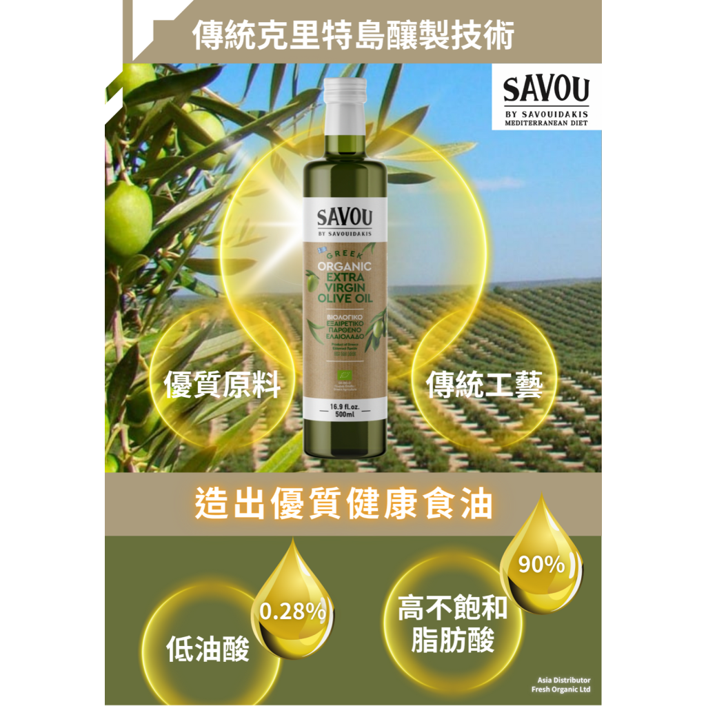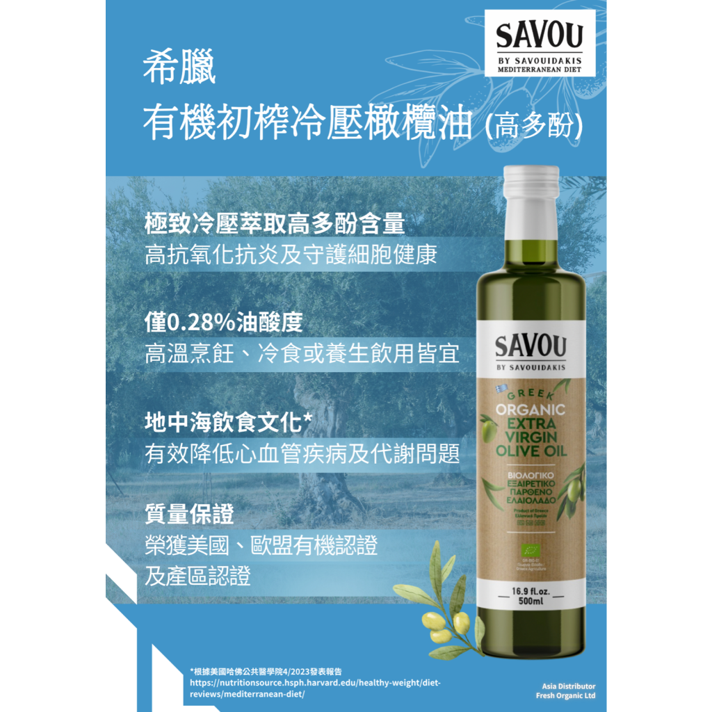 SAVOU 薩鬱有機特級初榨冷壓橄欖油(高多酚) | 500ml